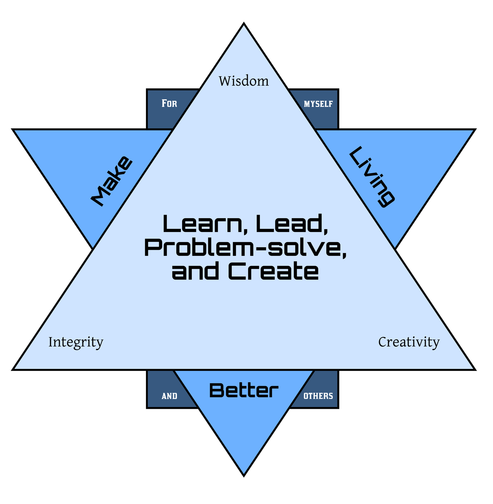 With wisdom, integrity, and creativity, I learn, lead, problem-solve and create, so that, I make living better for myself and others.